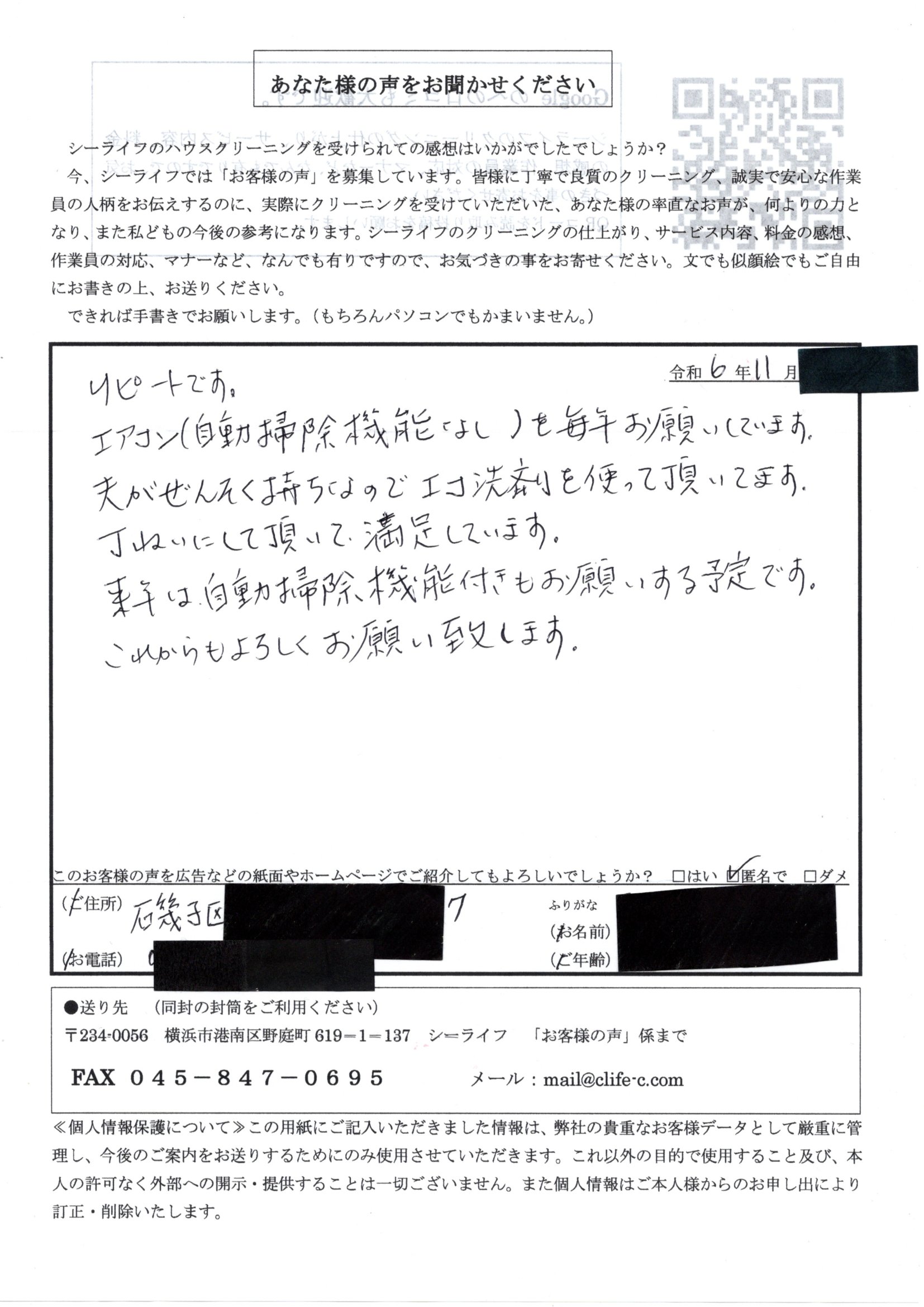 横浜市磯子区 女性 ご利用時期 令和6年11月 お客様の声