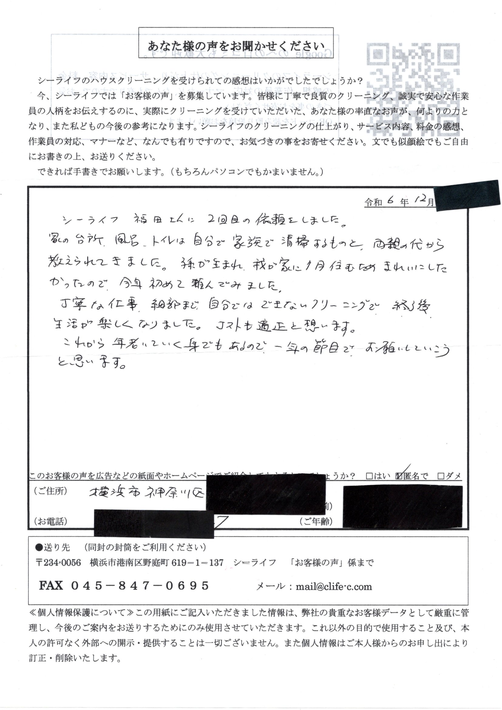 横浜市神奈川区 男性 ご利用時期 令和6年12月 お客様の声