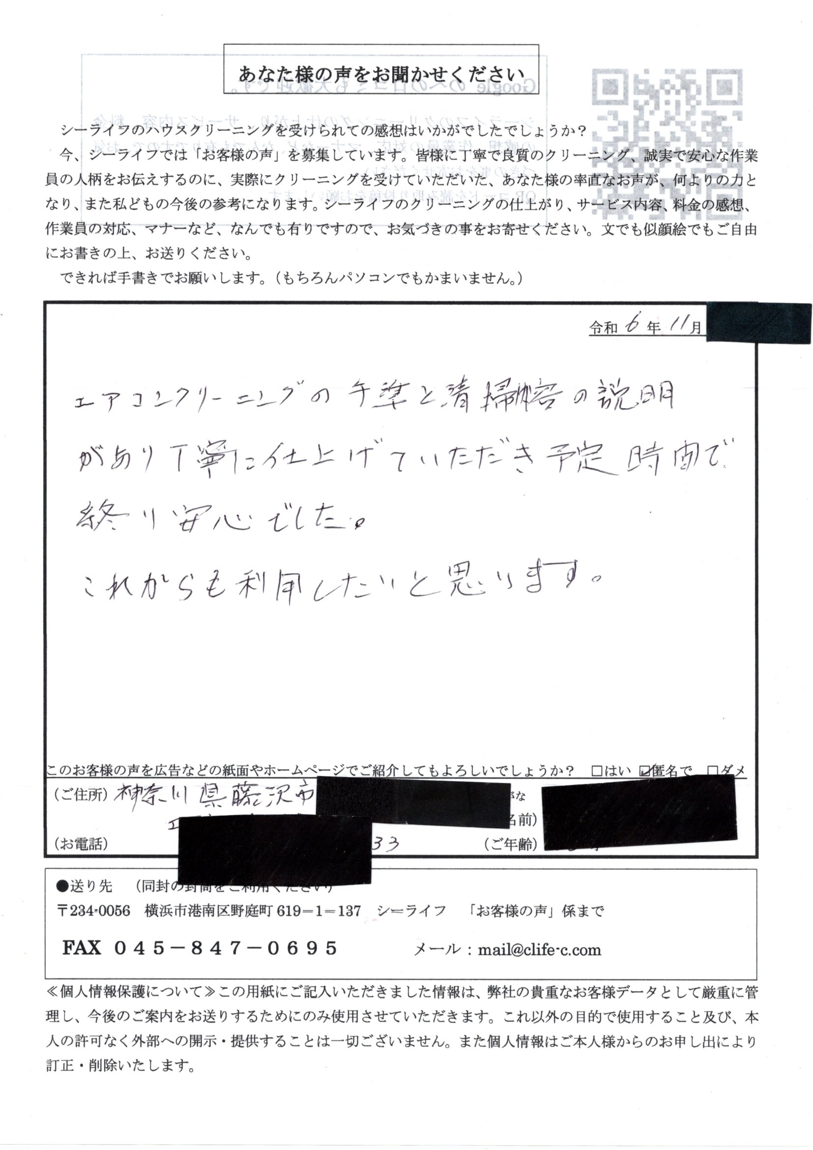 藤沢市遠藤 女性 ご利用時期 令和6年11月 お客様の声