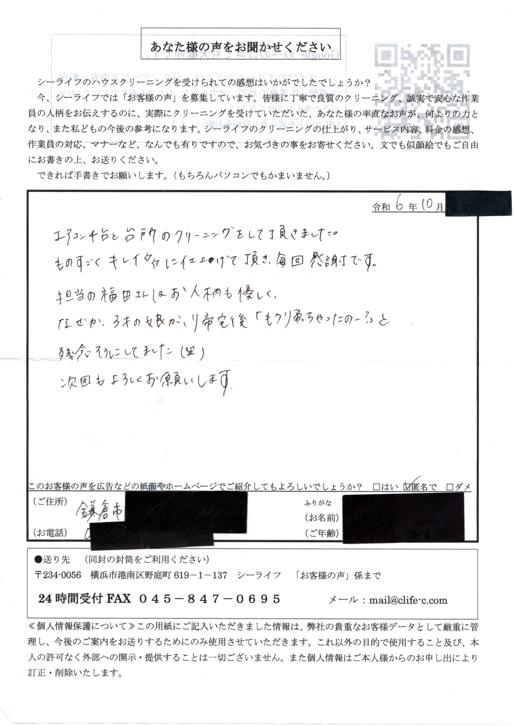 鎌倉市城廻 男性 ご利用時期 令和6年10月 お客様の声