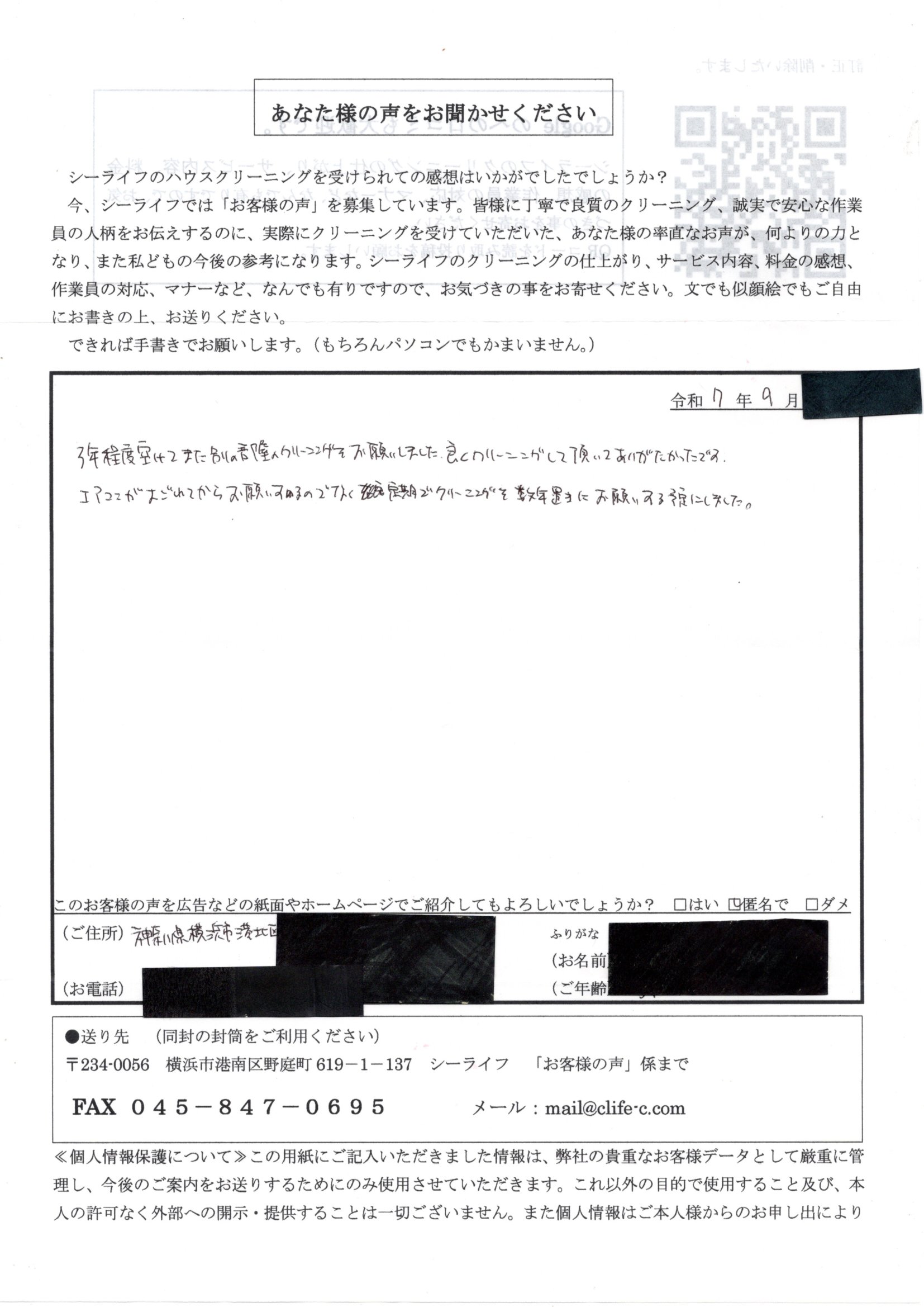 横浜市港北区 男性 ご利用時期 令和7年9月 お客様の声