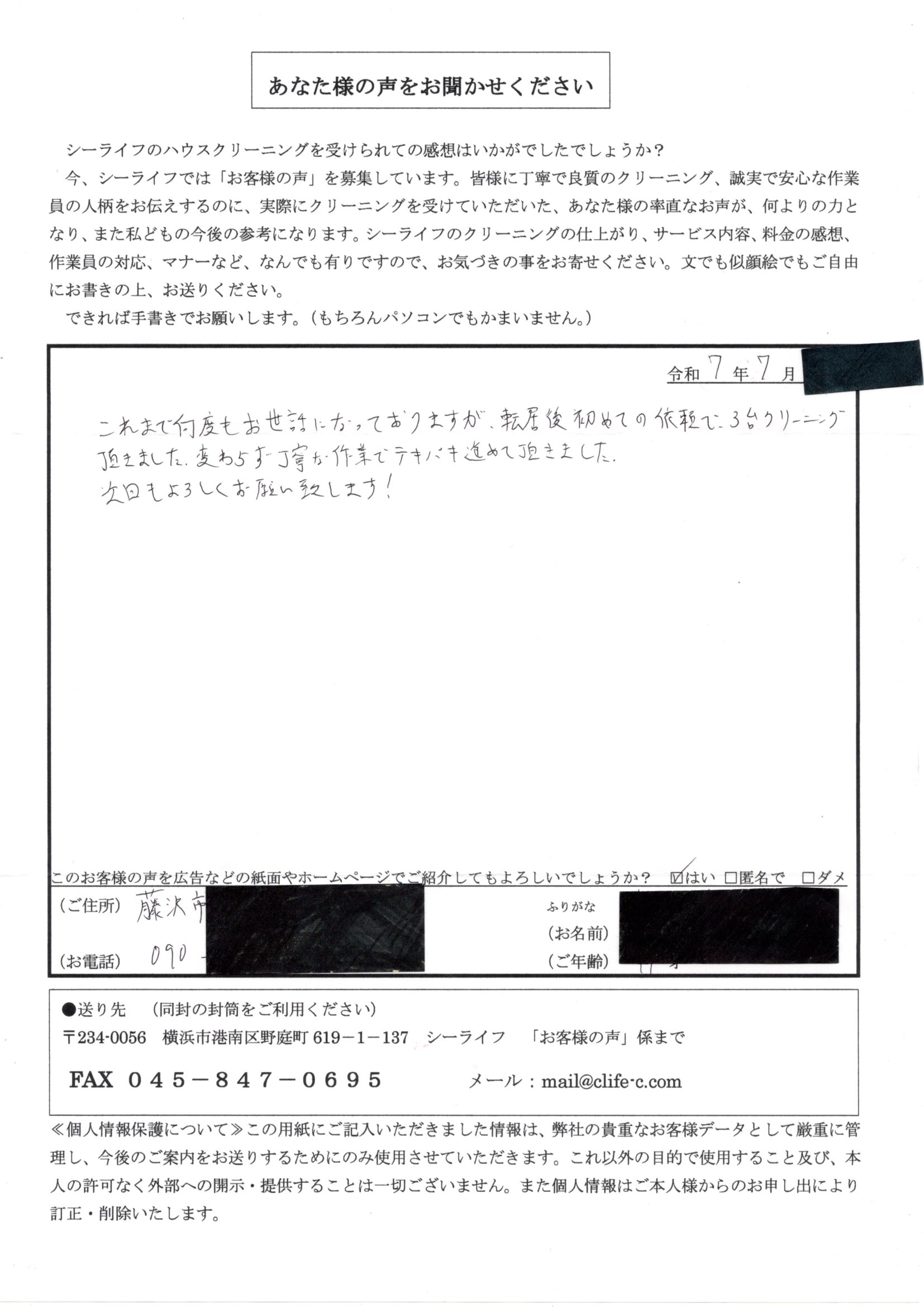 藤沢市藤沢 男性 ご利用時期 令和7年7月 お客様の声