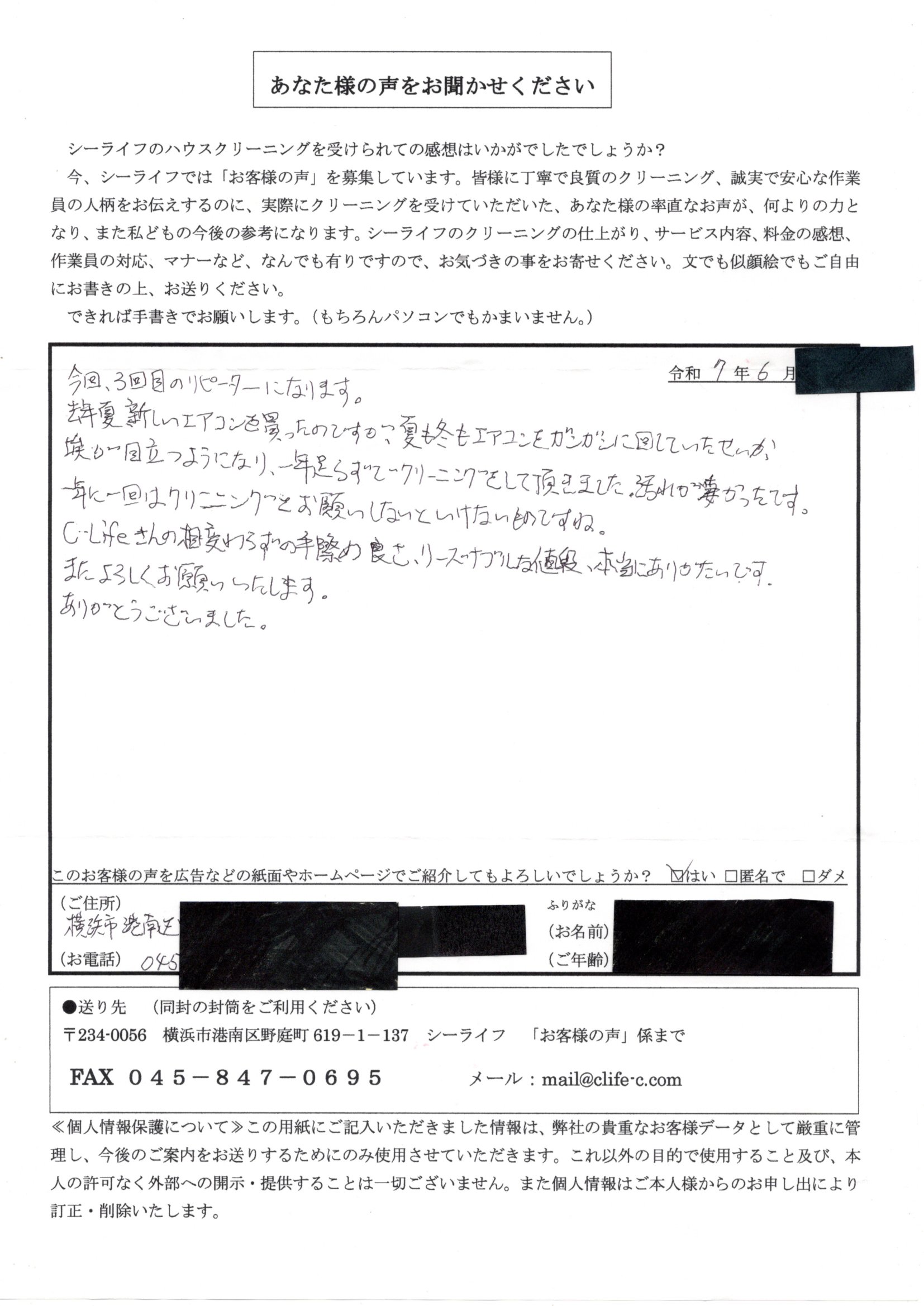 横浜市港南区 男性 ご利用時期 令和7年6月 お客様の声